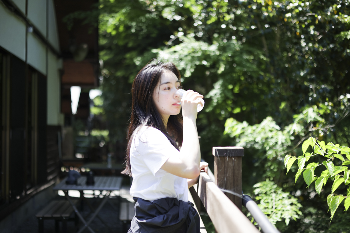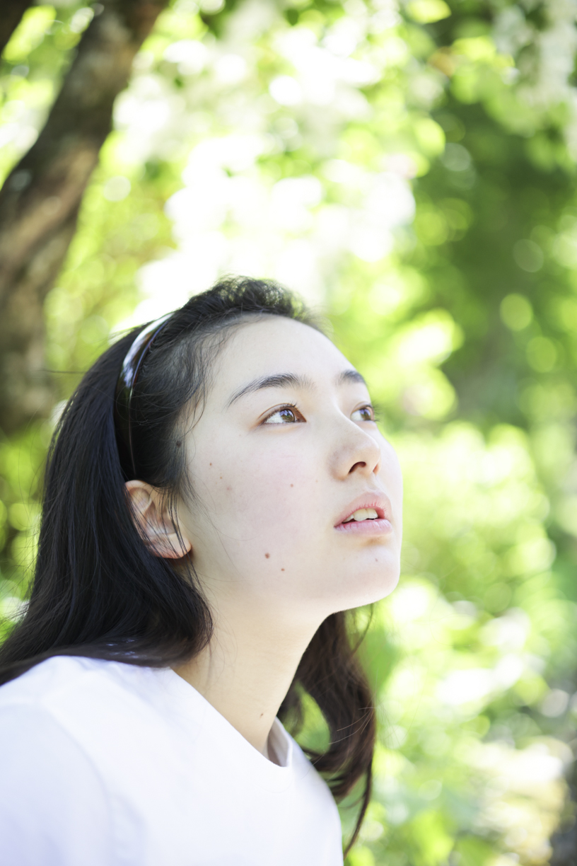 5月の柔らかい光の中、新緑に包まれて透明感溢れる佐藤千穂さんを撮影した。